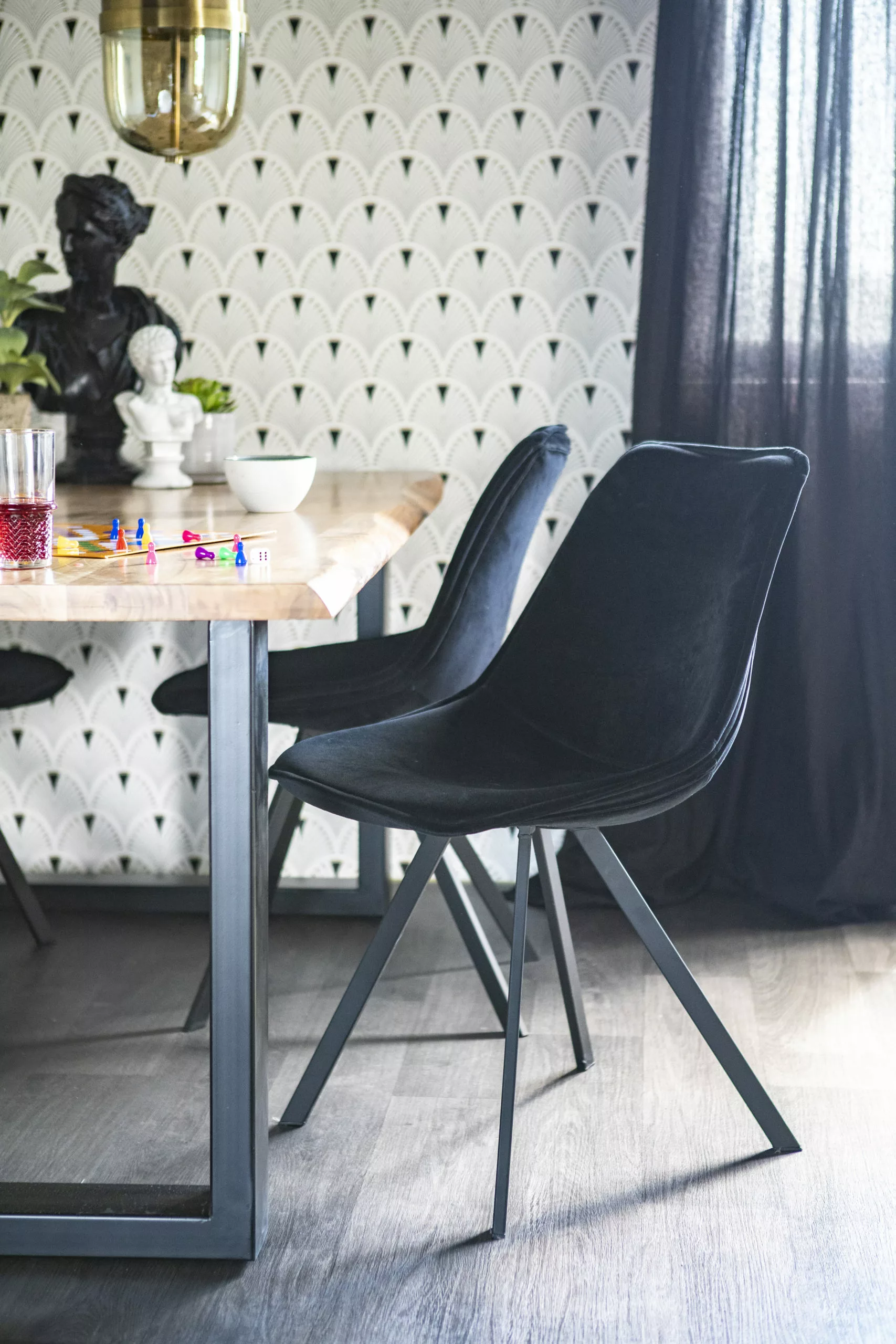 Hurmaava Belle! Musta samettituoli – pehmoinen ylellinen sametti yhdistettynä trendikkääseen mustaan metallirunkoon. Kaunis hohtava musta tuo tyylikästä dramatiikkaa sisustukseen. Mukava istua, mutta silti helppo liikutella. Kerää ruokapöydän ympärille, yhdistele eri värejä tai muita BY-BOOn tuolimalleja. Monikäyttöinen tuoli sopii myös lukunurkkaukseen, työtuoliksi toimistoon tai vaikka eteiseen. Saatavilla myös muissa väreissä ja pyörivä malli.