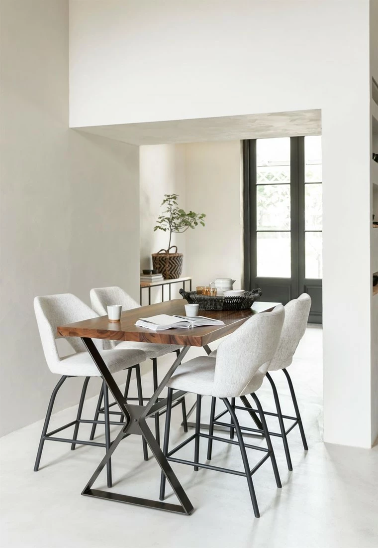 Yhdistä jykevään tiikkipöytään ja luo toiveidesi näyttävä ruokailuryhmä. Autamme myös mielellämme suunnittelussa. Baarituoli on saatavilla myös muissa luonnonsävyissä.
