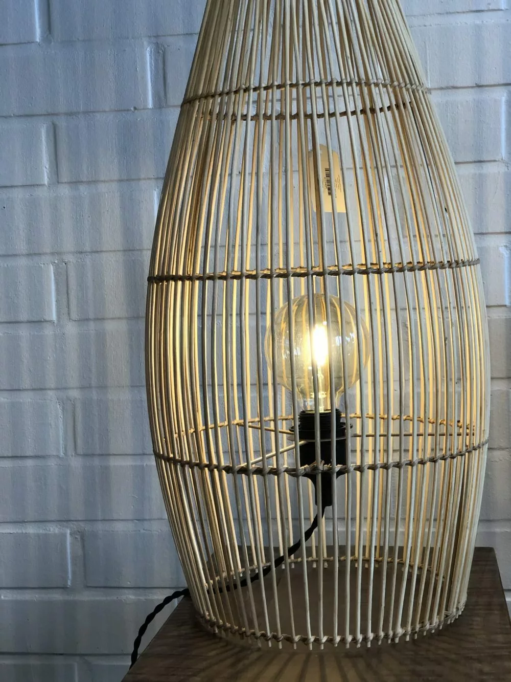 Hauska tupsu tämä rottinkinen boho lattiavalaisin. Rottinkivalaisin antaa kauniin tunnelmavalon häikäisemättä ja toimii oivallisesti samalla sisustuselementtinä. Monikäyttöinenkin se on, sillä muoto toimii tunnelmanluojana niin lattialla kuin tasollakin, ja varsinkin pienissä kapeissa tiloissa.