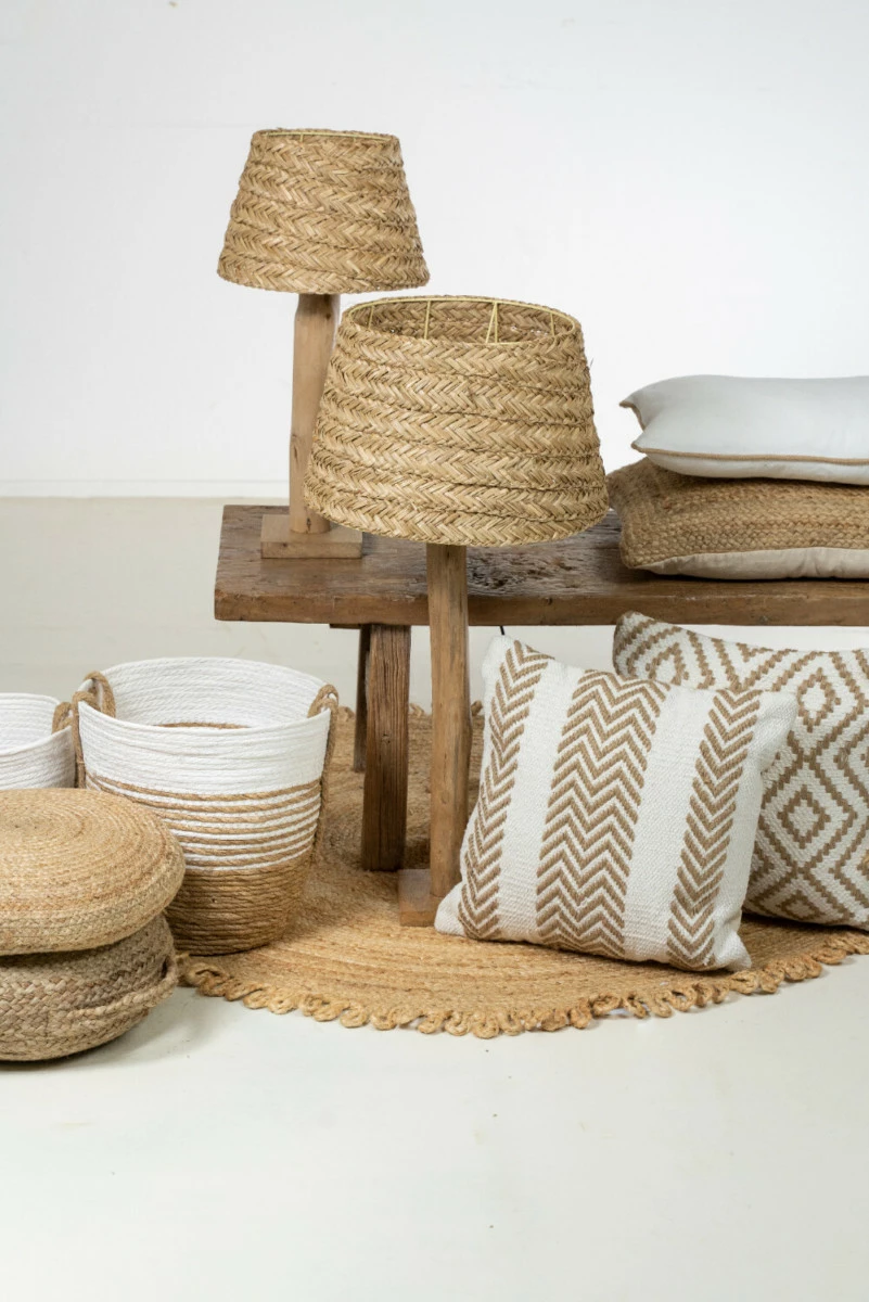 Raikas luonnonläheinen sisustustyyny kalanruotokuviolla. Kaunis bohotyylinen sohvatyyny 100% puuvillasta. Irrotettava sisätyyny sisältyy. Pesu 30 ‘C.