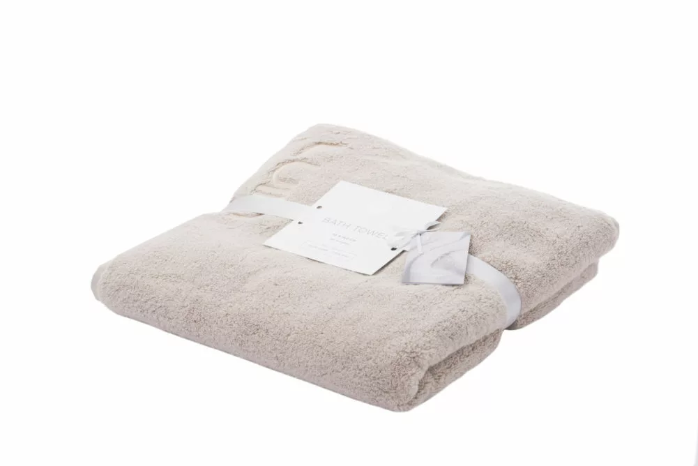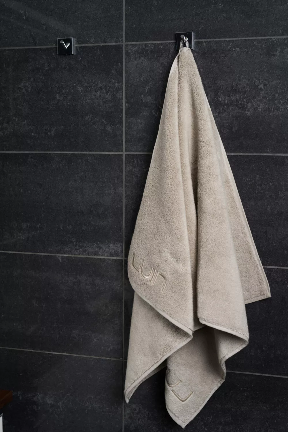 Luin kylpypyyhe Sand. Ihanan pehmoinen ja imukykyinen kylpypyyhe. Riipustuslenkki pyyhkeen pitkässä sivussa. Kestää käyttöä ja ihastuttava hiekan väri sopii minkälaiseen sisustukseen vaan!