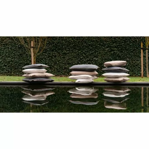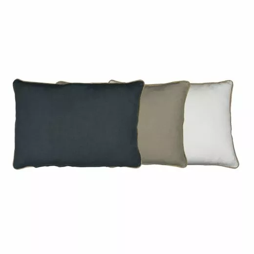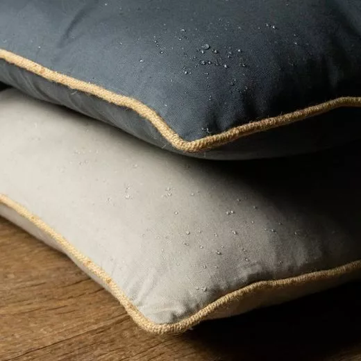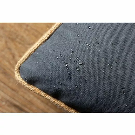 Sininen ulkotyyny terassin tai parvekkeen sisustukseen. Ulkokäyttöön sopiva tyyny on tehty kosteutta kestävistä materiaaleista ja voit huoletta sisustaa sillä ulkona. Kaunis naturel-värinen punosreunus kiertää tyynyn kantteja. Sisätyyny sisältyy.
