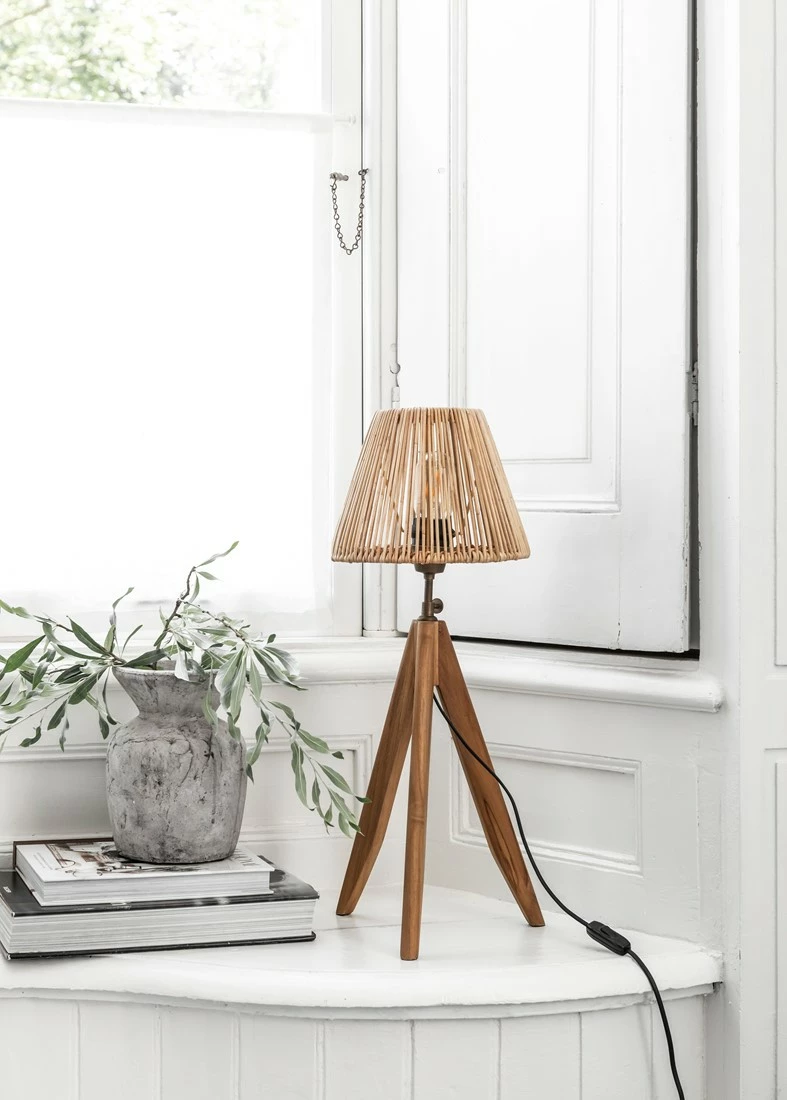 Kaunis pieni Montecristo pöytävalaisin antaa kauniin tunnelmallisen valon. Puinen kolmijalka yhdistettynä rottinkiseen kupuun tuo mukavasti luonnonläheisyyttä sisustukseen elegantilla tyylillä. Täydellinen valaisin yöpöydälle tai tunnelmavaloksi.