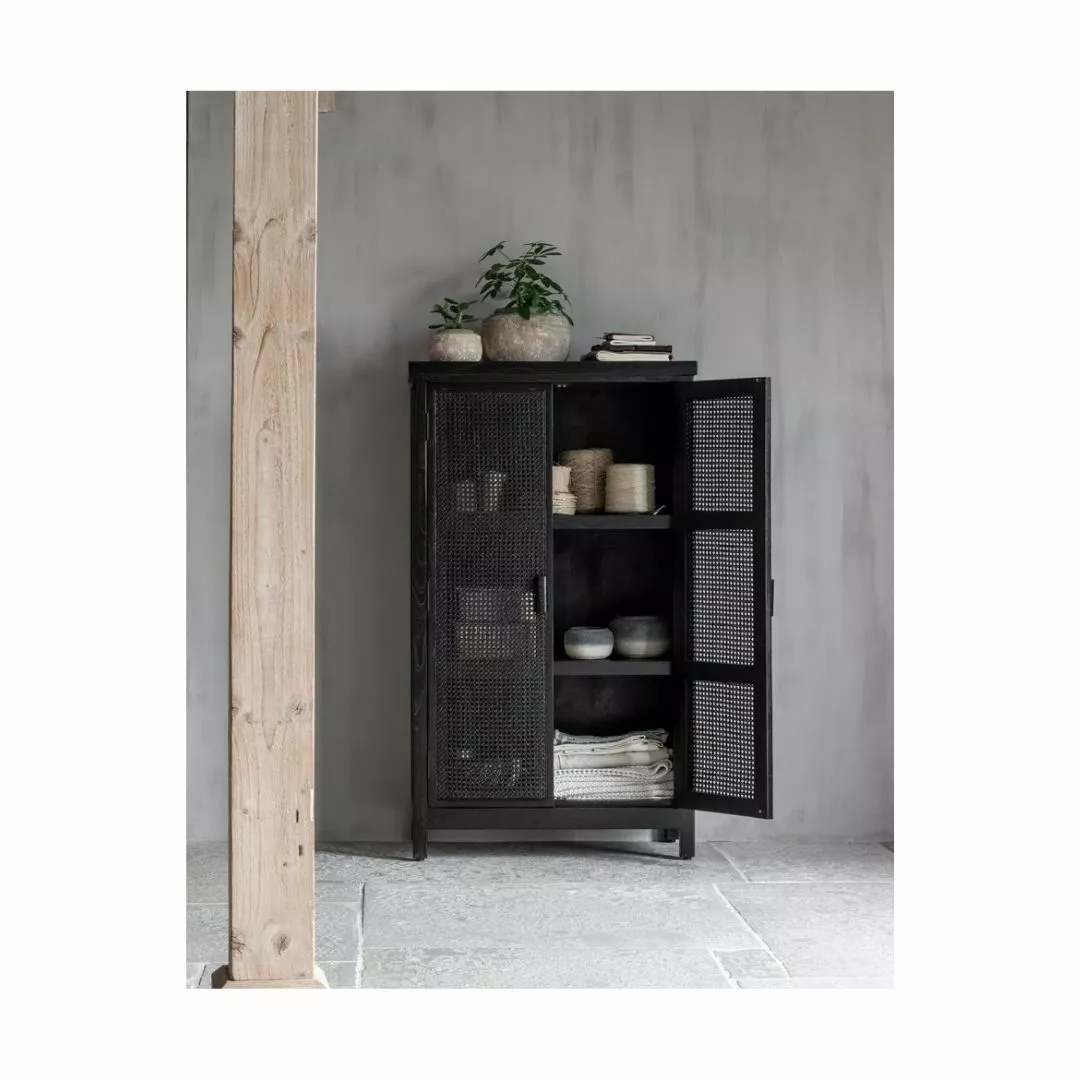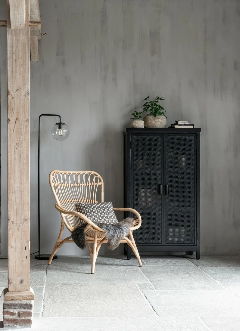 Jotain erilaista – tyylillä. Upean näyttävä musta rottinkikaappi. Laadukas rottinkikaappi niin katsetta kuin käyttöäkin kestävään säilytykseen. Täydellinen boholisä laatua arvostavalle sisustajalle! Sivuille aukeavien tuplaovien takana on hyllytasot. Kätevä ilmava säilytyskaluste eteiseen, makuuhuoneeseen tai vaikka mökille.