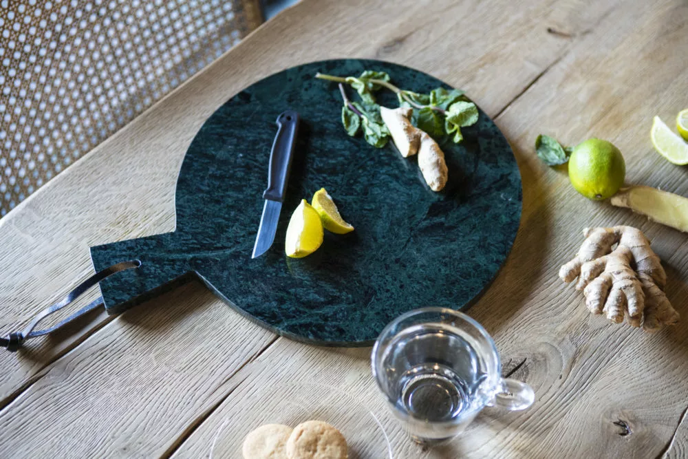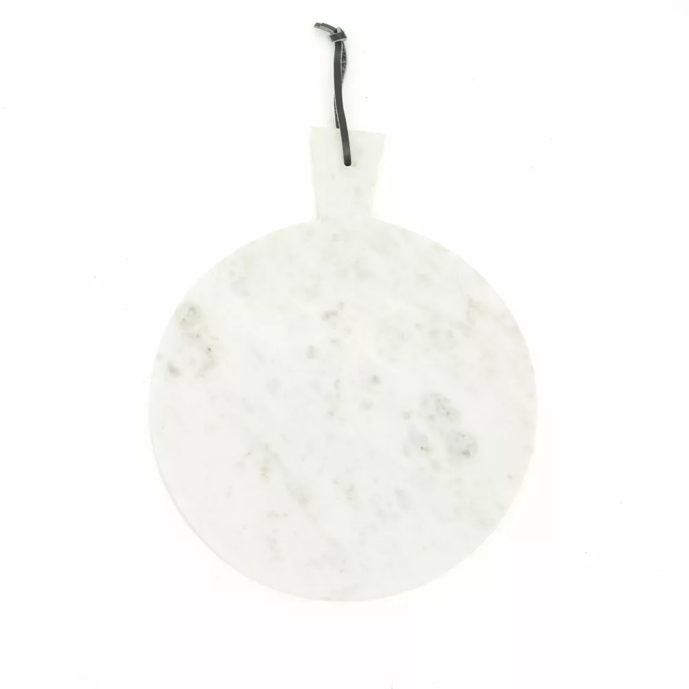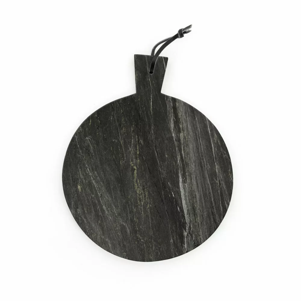 Leikkuulautojen tyyliniekka numero uno! Tämä pyöreä musta marmorinen leikkuulauta toimii niin tarjoiluun, keittiön sisustukseen kuin kappas vaan – leikkuulaudaksi! Trendikäs marmori tuo ripauksen luksusta keittiöösi, joten tämä ei kuulu laatikkoon. Ripusta se vaikka nahkalenkistä seinälle, leikkaa leivät, ja tarjoile juustot tai vaikka tapakset. Sitruunasta marmori ei tykkää!