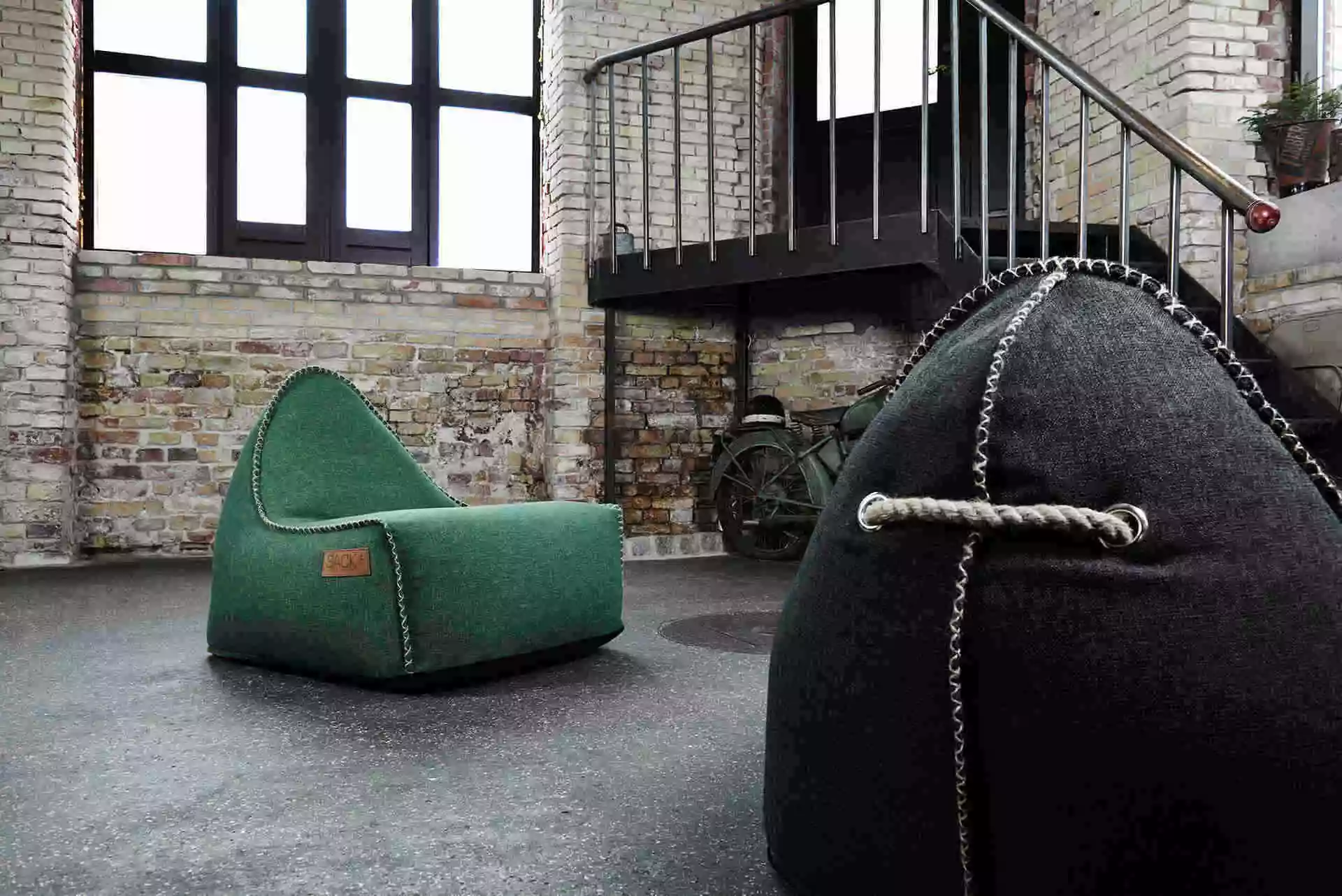Tanskalaisen SACKit’in säkkituoleilla luot helposti rennon loungefiiliksen niin ulos terassille kuin sisätiloihinkin. Tukeva kaksiosainen rakenne tekee tuolista hyvin istuttavan menettämättä kuitenkaan sen rentoutta. Käsinneulotut tikkaukset viimeistelevät tyylikkään tuolin.