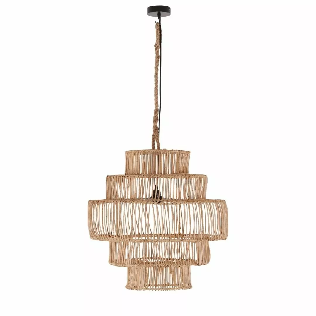 Kauni suuri rottinkivalaisin 60×60 on oivallinen korkean tilan kattovalaisin. Aavistuksen boho tyylinen iso kattovalaisin tuo kotiisi lämmintä kotoisaa tunnelmaa maanläheisellä tyylillä. Laadukas luonnonmateriaaleista tehty kattolamppu antaa kauniin tunnelmavalon häikäisemättä ja toimii oivallisesti samalla näyttävänä sisustuselementtinä. Ripusta vahvasta juuttiköydestä haluamaasi korkeuteen.