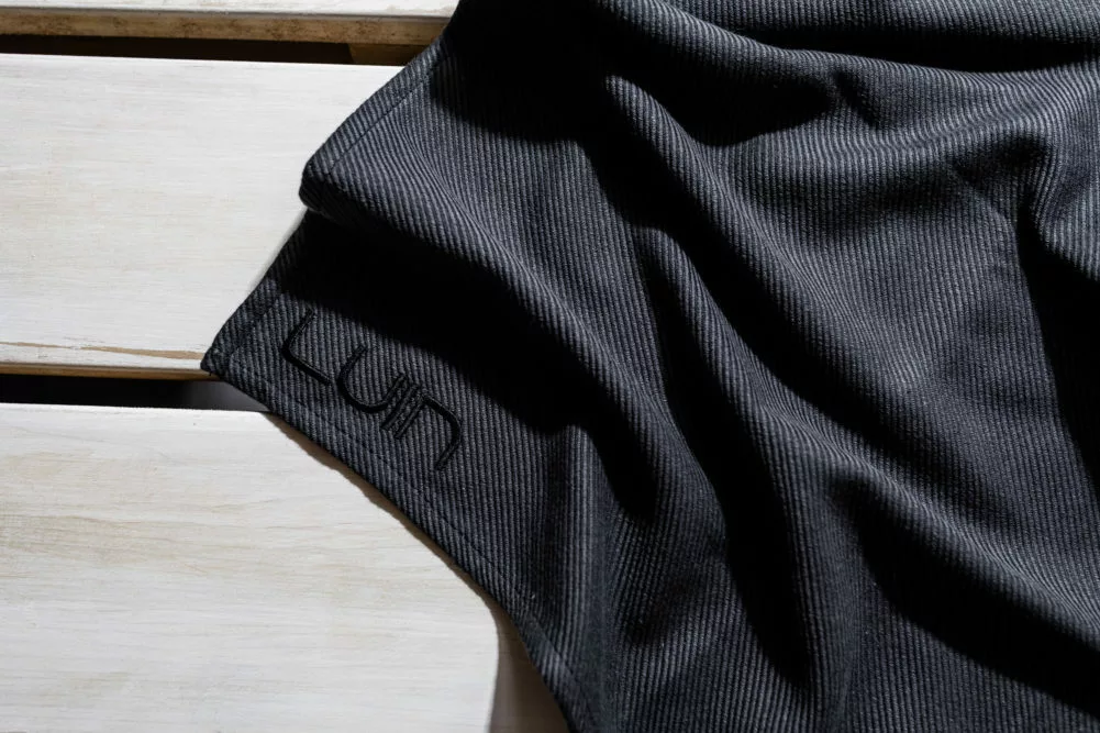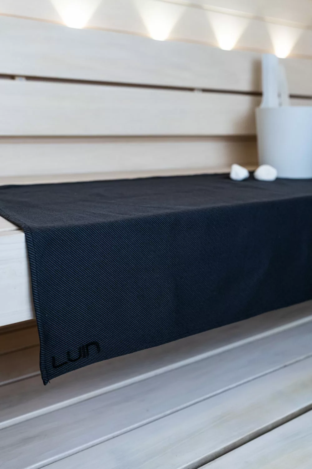 LUIN laudeliina 150×60 Black. Monikäyttöinen laudeliina sopii ulos yhtä hyvin kuin sisällekin. Käytä hemmottelevana saunan laudeliinana tai tyylikkäänä istuinsuojana terassituoleilla.