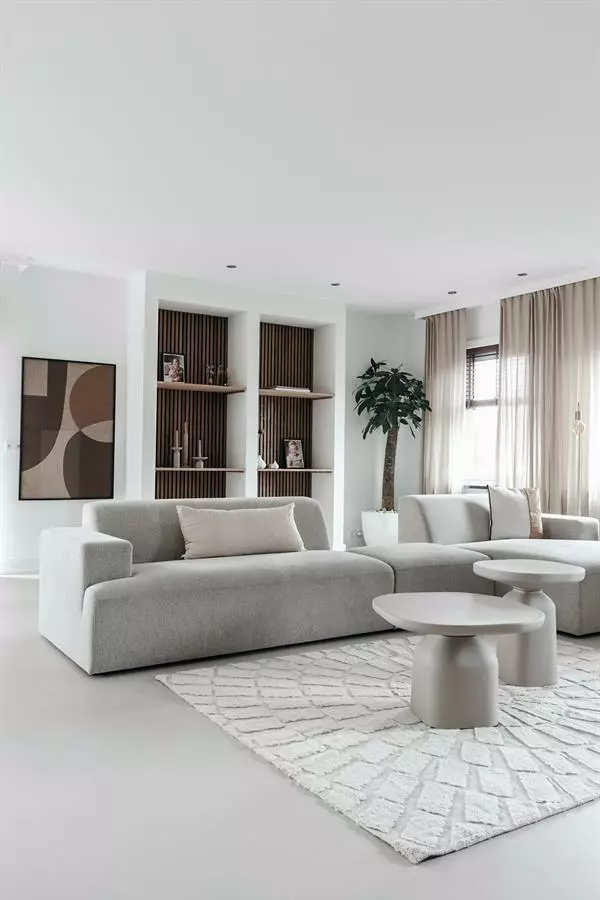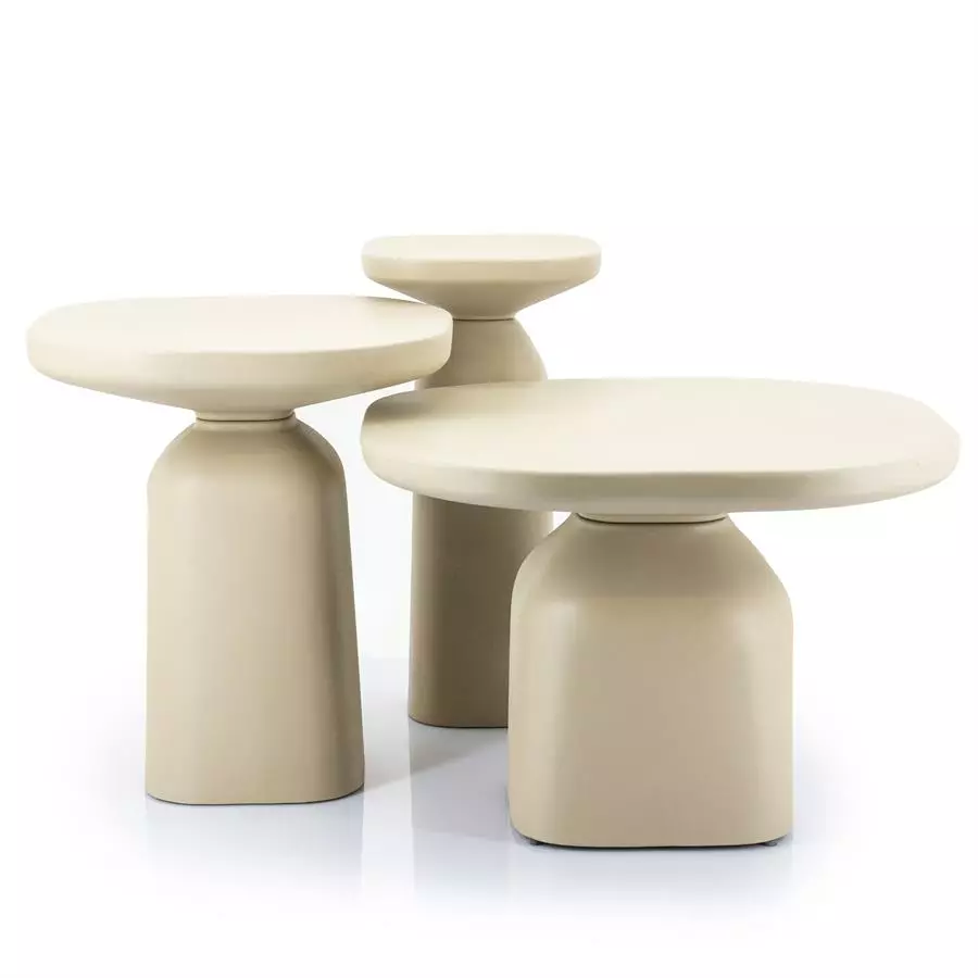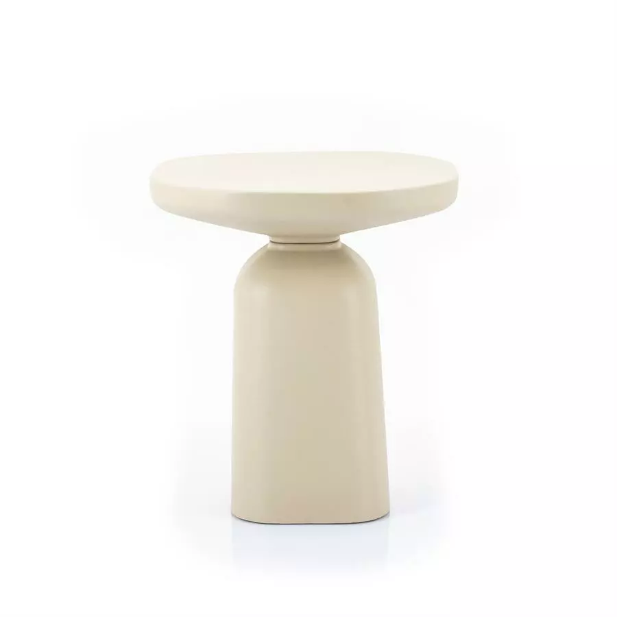 Tämä beige pyöreä sivupöytä hurmaa pehmeällä ja vankalla muotoilullaan, ja yllättää keveydellään. Hiekkakäsitelty alumiini on mielenkiintoinen kovan ja pehmeän materiaalin yhdistelmä. Yhdistä saman sarjan muihin kokoihin ja luo omannäköisesi sarjapöytä olohuoneen sisustukseen.