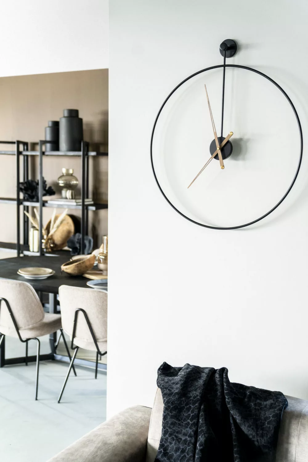 Sundial large iso seinäkello on saanut inspiraationsa aurinkokellon yksikertaisesta ideasta. Suuri 70cm halkaisijan musta metallikierre ja linjakkaat puuviisarit yhdistyvät näyttäväksi seinäkelloksi, joka sekä näyttää ajan että koristaa seinän tyylillä. Ripustus seinälle heilurimaisesta pidikkeestä.